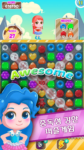 누구나 좋아하는 캔디, 젤리, 아이스크림, 과자들로 만들어진 세상에서 게임을 즐겨보세요.
