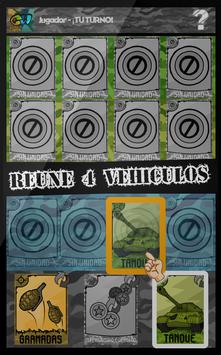 * ROBBERY and EXCHANGES: They consist of the cards of STEAL UNIT, UNIT EXCHANGE and ARMY EXCHANGE. With the STEAL VEHICLE card you can steal any rival unit that is not armored and that is not on your board. With the UNIT EXCHANGE card you can exchange a unit of your board for a rival that is in better condition provided they are not locked. Of course, you can not give the opponent a unit that already has or your receive a repeated unit unless the exchange is between units of the same type. With the ARMY EXCHANGE card you can exchange all the units of an opponent for all your units, including the armored units.