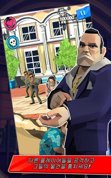 막스 머슬스, 도니 달러스, 그리고 카르텔 킹스의 나머지 캐릭터들을 만나세요! 그들은 총을 쏘고 싶어 손가락이 근질거리고, 형편없는 의상 감각을 가지고 있고 물건 훔치기를 좋아합니다. 그들을 천천히 움직이게 하세요. 그러면 그들이 도시 거리를 폭파하면서 나아가고, 나쁜 녀석들을 제거하고, 물건들을 폭파하여 현금과 보물, 심지어 더 큰 총들을 사냥합니다! 외롭다고 느끼거나 그저 으스대고 싶다면, 친구들과 카르텔에 가입하고 적 카르텔과 경쟁하여 멋진 보상을 사냥하세요! 아니면 베틀 베이를 방문하여 다른 플레이어 기지를 공격하여 그들의 전리품을 훔치고 당신 자신의 백만장자 맨션을 업그레이드하세요. 순금 화장실이 저절로 생기지는 않잖아요!
