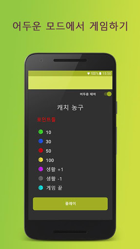 시간이 지남에 따라 들어오는 공의 속도가 빨라지고 공을 잡기 위해 서둘러야하므로 게임이 더욱 어려워지고 공을 잡는 재미가 있습니다. 캐치 농구는 시간이 지남에 따라 어려움을 겪지 만 많은 재미가있을 수 있지만 집중해야합니다.