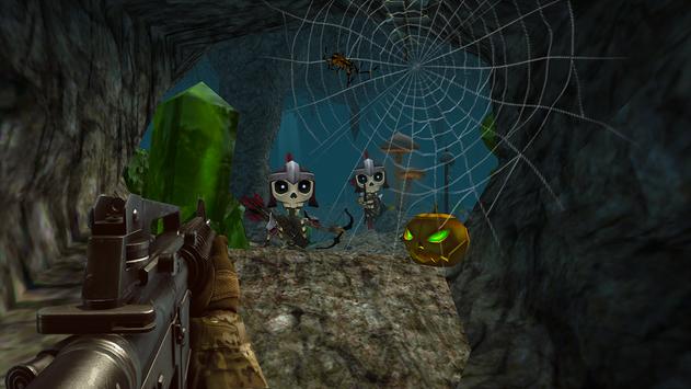 Cave Adventure shooting is a ghostly skull shooting game having Halloween game characteristics. You are a brave commando shooter and some creepy creatures are disturbing people in small villages of valley. And after attack they hide in their hideout in deep forest. Now you got knowledge of their hidden cave. So you have to encounter creepy skeletons in wide area of hidden underground cave. They are enjoying and dancing in their typical horror music. But be careful going near to them because they are deadly and combat trained attackers at the same time. If they finds you intervening their hidden premises, they will attack on you. You can only shoot those creatures when you get close to them and it is the main thrill of this game that you have to face those creatures otherwise your ammunition is not going to work on them. You can also use rocket launcher in next levels on attackers in groups. There are two types of attackers.