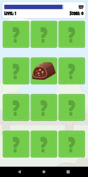 For each level, player is required to tap the square buttons and need to memorize what is behind it in order to match its couple. Players are required to complete a level in minimum finger taps to match all Chocolates.
