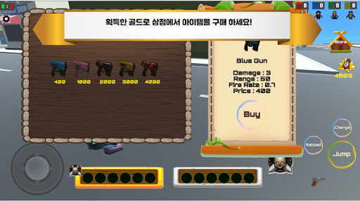 상대 팀을 무찔러 획득한 골드로 상점에서 총을 구매하세요