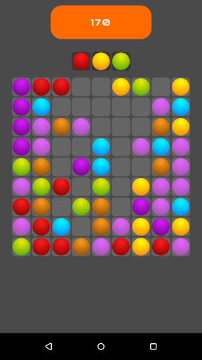 Try to arrange balls of the same color in vertical, horizontal or diagonal lines. To move a ball click on it to select, then click on destination square. Once line has five or more balls of same color, that line is removed from the board and you earn score points. After each turn three new balls randomly added to the board. The game is over when the board is filled up.