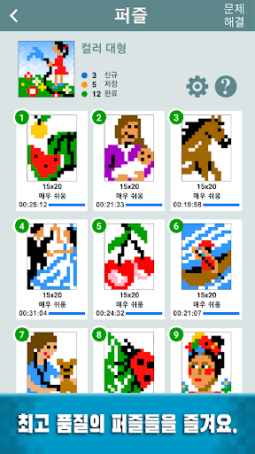 퍼즐을 풀어서 정사각형의 칸을 색칠해 아름다운 픽셀 아트 그림을 완성해요! 각각의 퍼즐은 빈칸과 각 행, 열 끝에 제공되는 단서로 구성되어 있습니다. 퍼즐의 목적은 각 행과 열에 연속되어 칠해져 있는 칸의 숫자와 빈도를 단서 삼아 각각의 칸을 색칠해 최종적으로 숨겨진 그림을 완성하는 것입니다.