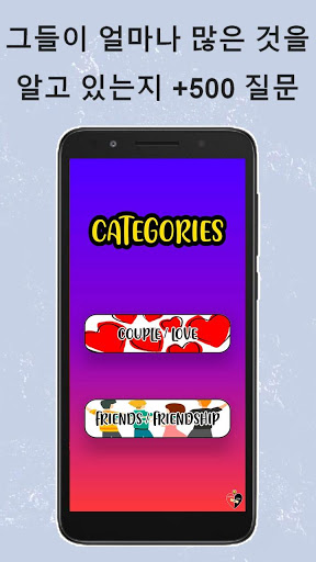 커플 게임은 커플이나 가장 친한 친구를 테스트하는 퀴즈 게임입니다. 게임에 나와있는 질문은 친구 나 파트너가 올바르게 답변해야하며 또한 답변해야한다는 것입니다. 결국 도전의 승자는 상대방에게 형벌을 줄 수 있으며, 상대방에 대해 더 잘 아는 사람을 보게 될 것입니다.