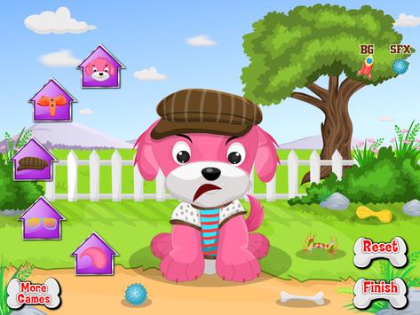 Everyone loves to have pets in the house so we are very happy that we can make other people happy. You need to take care of my home and my animals respectively. Think you can help? Let's see. For starters must try to make the little dog a bath, to apply a layer of soap after which we will spread over the entire face. Then you must get him out of the tub and pat it and then everything was drying his hair to cool and not to feel better. You have to dressed and then cut all his nails. Still need to get him out and give him some food because she should not be hungry and we want to get sick. You have to dress appropriately for the weather outside so we will give him a hat, we will put a dog clothing on him and we will put a pair of shoes for dogs. It seems that everyone got home and ended our work here. Please try other games for girls in this category to test your skills and competencies required for these games.