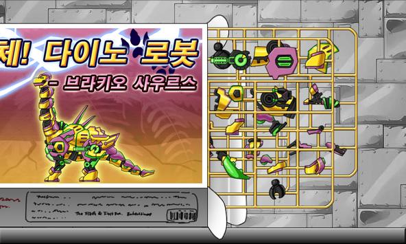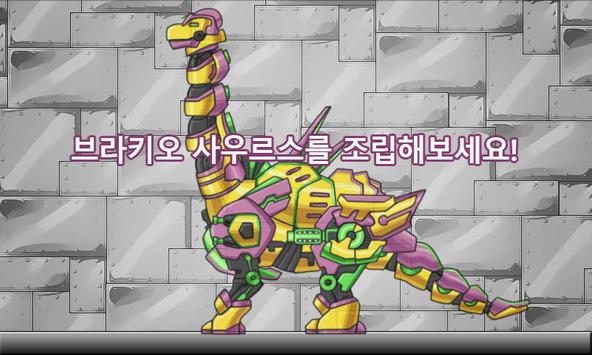 흩어져있는 브라키오사우루스 로봇 부품을 조립하여