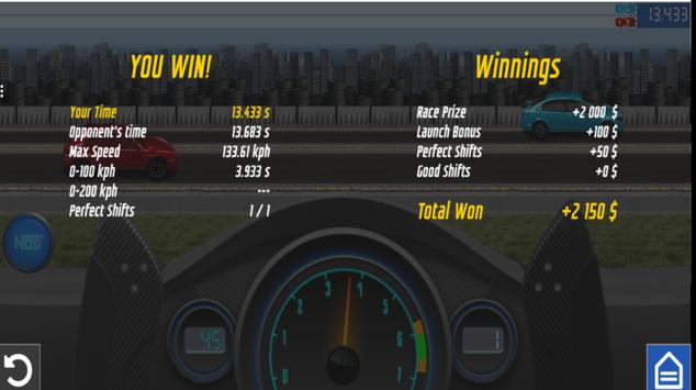 Get into your car and explore the exciting world of street drag racing! Make a name for yourself in the scene as you race against various opponents and climb the ladder to the top. Wait for the perfect moment to switch gears and prove that you're the best driver in the city. Earn prize money, pimp your car and unlock new and better vehicles. Can you beat them all and become drag racing champion?