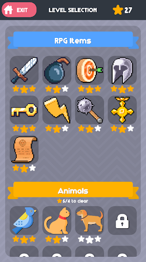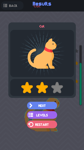 Stars will be awarded depending on how much the line covers the drawing. Each level differs from the others not only in the pattern, but also in the speed of the stroke and the size of the objects.