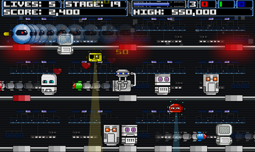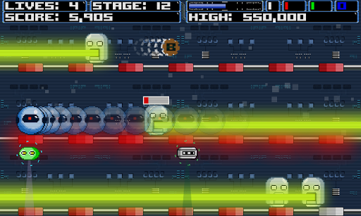 점점 적대적이고 다양한 적의 드로이드의 35 단계를 통해 당신의 길을 폭발시킵니다.각 단계에서 모든 적의 드로이드를 파괴하여 다음으로 진행하십시오.드로이드는 수많은 정교한 점수 방법과 비밀 점수 기술을 특징으로합니다.