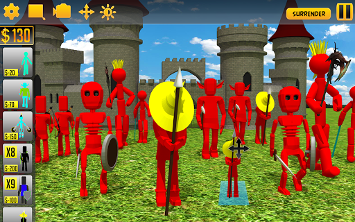 목표는 적의 성을 넘어서거나 파괴하는 것입니다. 당신의 성을 당신의 성에서 전쟁으로 보내고 적의 성을 파괴하십시오. 두 군대는 서로의 성을 파괴하기 위해 최선을 다할 것입니다. 자비를 나타내지 않고 전투 분야에 더 강한 전사를 배치하십시오. 전장의 모든 병사들을 지켜보고 군인들이 살해 당하거나 숫자가 적은 군인을 배치하십시오. 작은 군대와 싸우고 성 아기와 군대 팩을 파괴하기 위해 아처와 거대한 Stickman 전사를 사용하기 위해 작은 전투기 스틱을 사용하십시오.