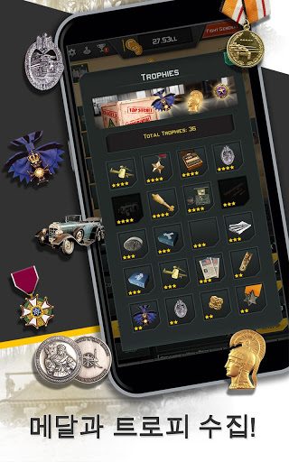 장교들을 모집하고 진급시켜 군대를 양성하고 전투력을 키워주세요. 적 장군을 무찔러 동전과 메달을 얻고 무기를 업그레이드하면 화력을 향상시킬 수 있습니다.
