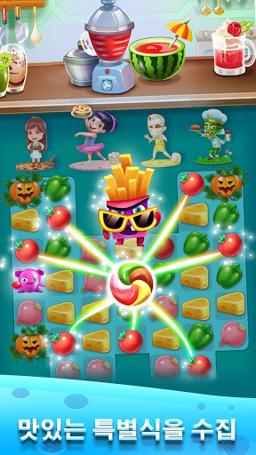 맞추고, 요리하고, 모으세요! 이것이 판타스틱 셰프가 되는 비밀입니다. 맛있는 식재료를 맞추고 푸드 믹서에서 요리하고 스타를 수집하세요! 장애물, 흐르는 기름 그리고 얄미운 쥐들을 이겨내세요. 세계적인 요리를 만든 노력의 대가로 셰프 배지를 획득하세요!