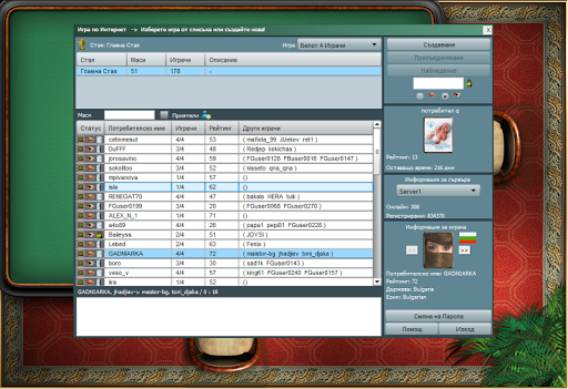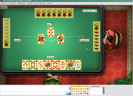 컴퓨터 상대방의 아주 좋은 지성 - 불가리아어의 편리한 인터페이스뿐만 아니라 20 개 이상의 언어 - 카드의 다른 종류의 얼굴과 카드를 선택합니다. 컴퓨터 상대방 및 기타 여러 사운드 효과를 들리는 소리 - 가능성 다른 설정의