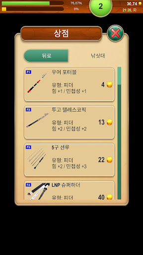 - 더 강력한 낚시 릴을 사용하면 큰 물고기를 더 쉽게 꺼낼 수 있고 빈 장비를 빠르게 감을 수 있습니다.