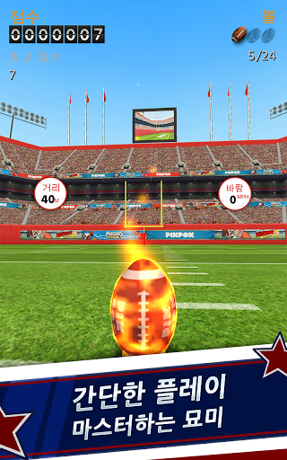 배우기 쉬운 컨트롤과 마스터하기 어려운 도전을 가지고 있는 Flick Kick® Field Goal은 게임을 내려놓기 어려운 중독적인 게임입니다! 커트 킥을 차고 계속 바뀌는 조건 속에서 보상을 받으세요. 모든 미식축구 팬을 위한 게임으로 실력을 가늠해 보세요!