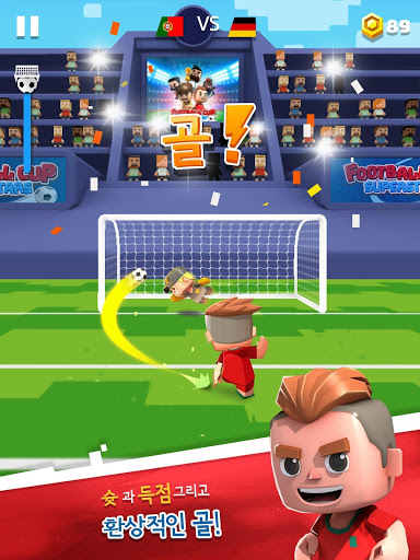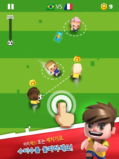 간단하고 재미있는 원터치 컨트롤로 터치만 하면 공을 패스하고 슛을 날려 득점할 수 있습니다. 이 아케이드 축구 스포츠 게임에서는 축구 팬이 아니더라도 누구나 전 세계 모든 사람에게 도전하여 챔피언이 될 수 있습니다! 게다가 총 득점 수를 놓고 친구를 상대로 도전하는 재미도 있습니다.