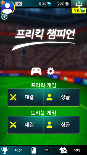 축구 프리킥, 드리볼 게임에 덱 시스템을 이용하여 재미를 더한 축구 게임