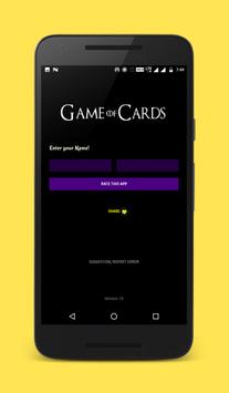 Game of Cards is an app targeting GoT fans. The app is still under development. There is a suggestion box in the app, so , do inspire me with the new features, fixes and improvements. The app is going through massive development process every day, so every new version is going to be better than the previous. keep checking for updates. Cheers :)