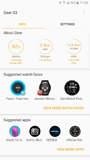 Samsung Gear 어플리케이션이 먼저 설치되어 있어야 정상으로 동작합니다.