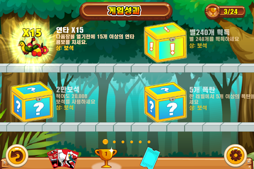 화투장 연결해서 패띄우는 게임입니다. 게임목표: 화투장을 연결해서 없애면 됩니다. 남은 화투0장 --- 3개별을 딸수 있습니다. 목표보다 남은 화투1장 --- 2개별을 딸수 있습니다. 남은 화투2장 --- 1개별을 딸수 있습니다. 화투3장 넘으면 게임을 다시해야 합니다. 감사합니다.넙죽~