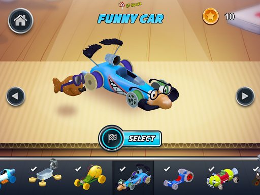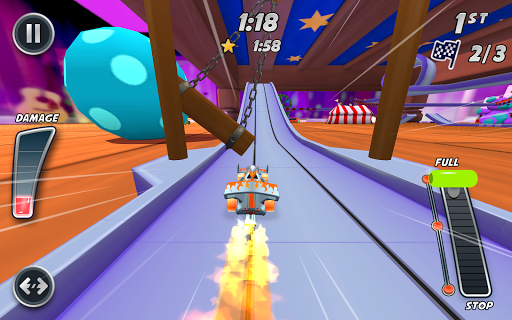 Pick from tons of track piece obstacles and more to build the wildest track you can imagine. When you’re done, build another! Post your track to a gallery filled with tracks from other players and test them all. Earn coins from racing and special rewards to unlock more karts and track pieces.