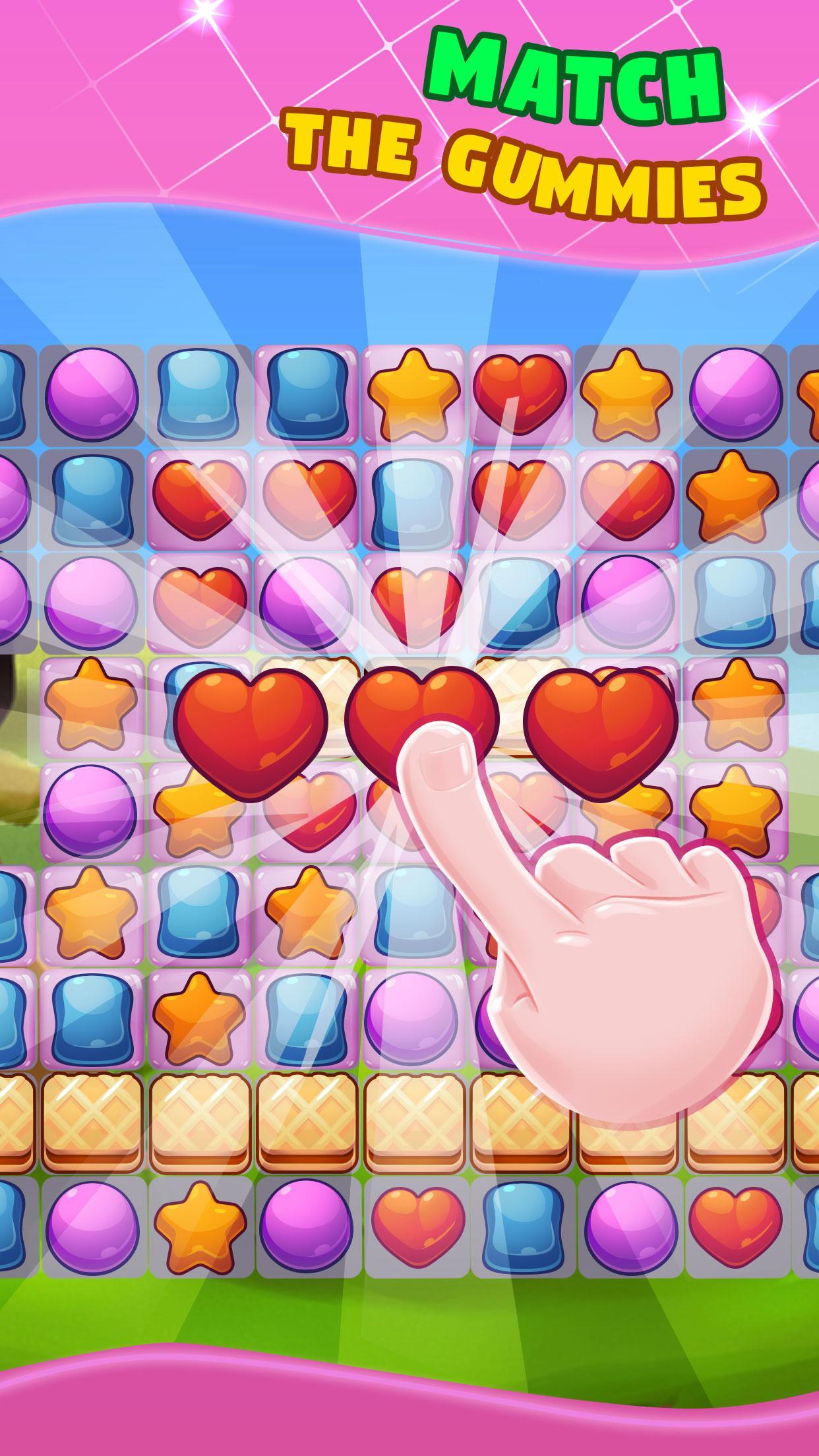 Take a journey to fantastic and shining sweet gummy lands. Start your match 3 puzzle adventure on sublime candy kingdom separated into different seasons and burst gummy candies of icy, greeny lands filled with delicious cupcakes, tasty donuts, chewy taffy, and dashy bonbon. Create sugar combo , juicy twist , and striped milk gummy to dash more jelly , yummy and scrumptious gummy to be the best candy smasher.