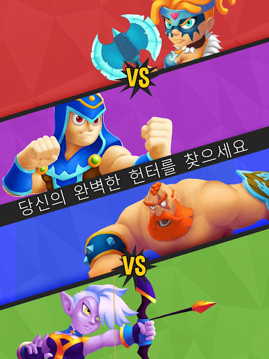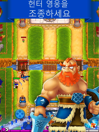 바이킹, 바베리안, 마법사, 레인저, 파이로, 석궁 사수인 6명의 헌터중 1명을 선택하고 헌터스 조이스틱을 움직여서 전투 중 조종하고 공격하세요!