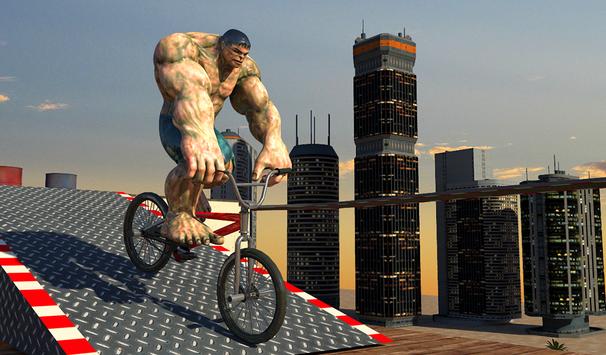 Perform amazing stunts with a stunt Bicycle  Drive on tracks with obstacles! Start playing the fun tracks right now, and challenge yourself to complete all monster hero Bicycle stunt level! Drive around a 3D model of a monster city with the choice of three vehicles.