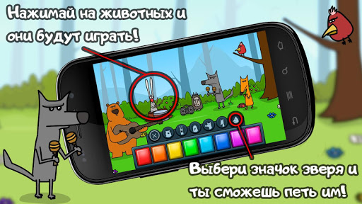 이 게임에서 각 동물은 음표로 노래 할 수있는 동물의 소리가있는 독특한 목소리, 피아노를 가지고 있습니다. 아이들을위한 어린이 피아노는 확실히 좋지만, 곰베이스를 부르거나 늑대를 태우는 더 많은 funnaya입니다. 이렇게하려면 원하는 동물의 아이콘을 클릭 한 다음 피아노 키를 누른 다음 피아노가 동물의 소리를 만듭니다.