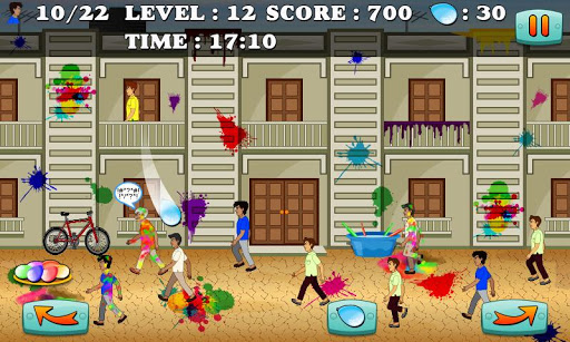 Get ready for a Holi fun with Let's Play Holi 2 game. Your targets are the people on the street, You have color balloons to color them and stones to break their pots. Enjoy this colorful game with vivid graphics and funky characters.