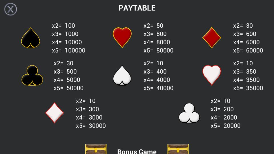 Game is based on playing cards symbols. With bonus game for more fun.