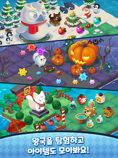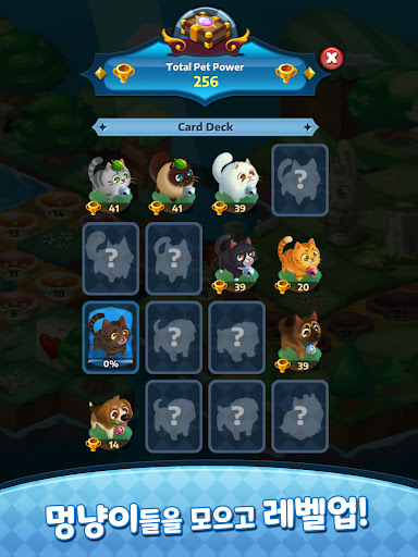 귀여운 멍냥이들을 구출하고, 함께 킹덤을 복구해 보세요. 함께 레벨을 클리어하면 멍냥이들도 레벨업!