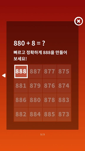 ▣ 간단하고 심플한 게임이지만, 여러분의 빠른 판단력으로 888을 전 세계 누구보다 먼저 만들어보세요. 빠른 판단력과 두뇌는 필수입니다^0^