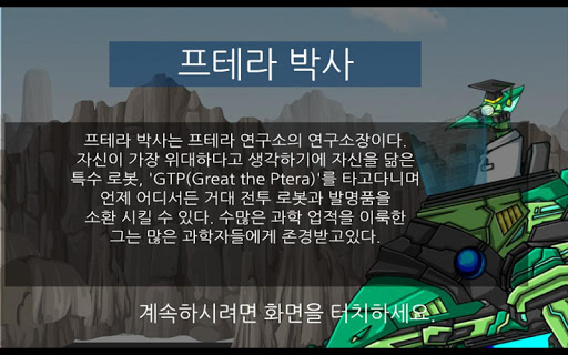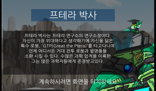 흩어져있는 프테라 박사 로봇 부품을 조립하여