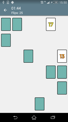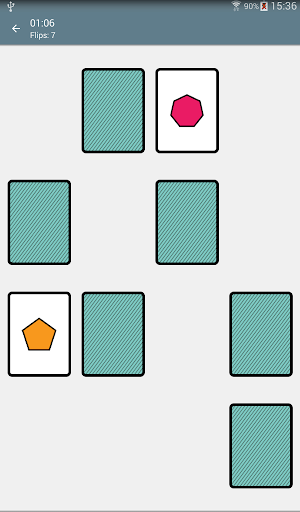 집중력은 모든 카드가 표면에 쌓이는 카드 게임이며 두 개의 카드가 각 차례에 뒤쪽으로 향하게 뒤집습니다.게임의 목적은 메모리를 사용하고 일치하는 카드 쌍을 뒤집는 것입니다. 모드 : 컬러 기하학적 모양이있는 4x4 - 6x6 >