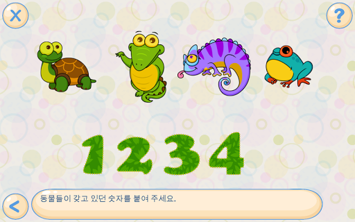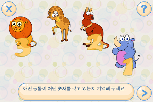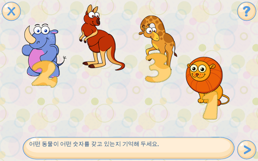 2. "누가 어떤 숫자를 갖고 있나요?" - 동물들이 갖고 있는 숫자를 외워 두었다가 동물들에게 붙여 주는 과제입니다. 아이의 기억력을 향상시킵니다.