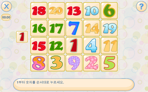 3. "숫자 찾기" - 제시된 숫자를 찾아내는 과제입니다. 아이의 시각 기억력을 향상시킵니다.