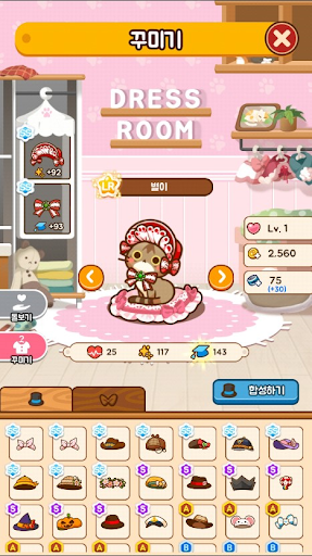 - 귀여운 고양이에게 옷도 입혀주고 씻겨도 주는 육성 요소