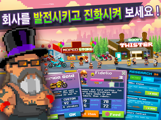 흔치 않은 오토바이를 만들고 독특한 모델을 만들고 일꾼을 행복하게 만드세요. 가게를 짓고 업그레이드하고 까다로운 고객을 즐겁게 하고 친구들과 시합해 보세요!
