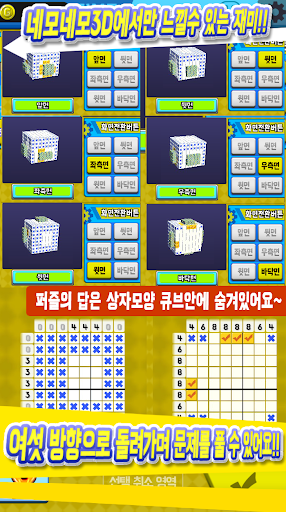 거기에 네모로직3D만의 새로운 방식인 퍼즐면을 돌려가며 문제를 풀어나가다 보면 어느새 깜찍한 입체도형이 완성되어 있을 거에요~ @___@ /