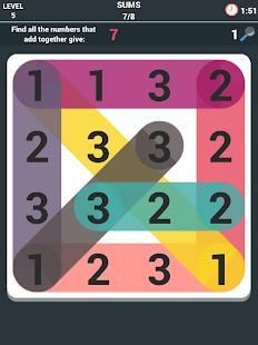* The game rule is really simple. But the task of every level is really fun and challenging, finding all the numbers that add together give a given number ( sum )