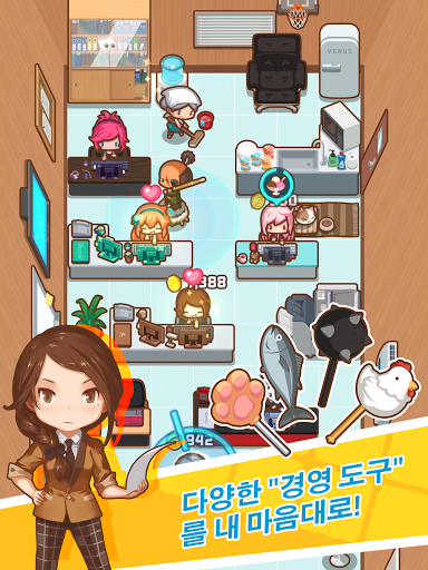 얻은 수익은 회사를 성장시키는 데 투자되어야 합니다. 사무실에 더 좋은 시설, 장비, 애완동물을 배치 하거나 다양한 “동기부여 도구”로 무장하세요. 회사를 다음 레벨로 한 단계 끌어올리기 위한 대대적인 업그레이드!