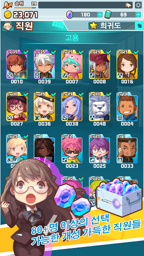 직원은 당신 회사의 최고의 자원입니다. 이 게임에는 각각 개인적인 능력과 재능을 가진 다양하고 독특한 캐릭터들이 대거 출연합니다. 나만의 드림팀을 만들어 차세대 10억 달러 경영자가 되세요!