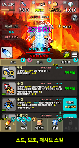 ★ [레벨업], [강화], [마법부여], [전설화], [진화] 를 통한 무기 성장