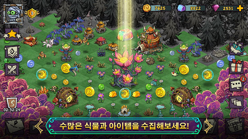 위대한 성스러운 볼의 힘으로 잠든 땅을 깨우고 건축, 식물, 몬스터, 골드, 보석 등을 수집하세요!