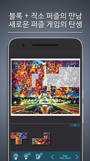 - 블록 퍼즐과 직소 퍼즐의 장점만을 모아 놓은 새로운 퍼즐 게임입니다.