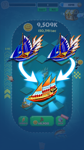 Mysterious sea, thrilling nautical world, drag the same boat to synthesize the upgrade, to find more treasure, more powerful ships waiting for you to unlock. What are you waiting for? Come and start the adventure!