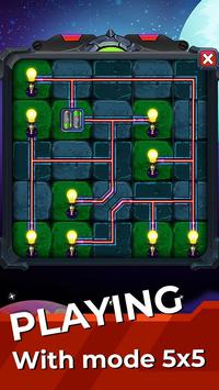 Your goal is to connect every flashlight on board to power battery. Follow power line with your finger, start from power battery, rotate line and let electricity flow to all flashlight.
